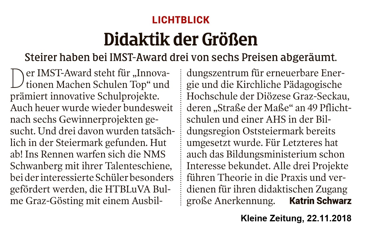 Projekt "Straße der Maße": IMST-Award für herausragende innovative Schulprojekte