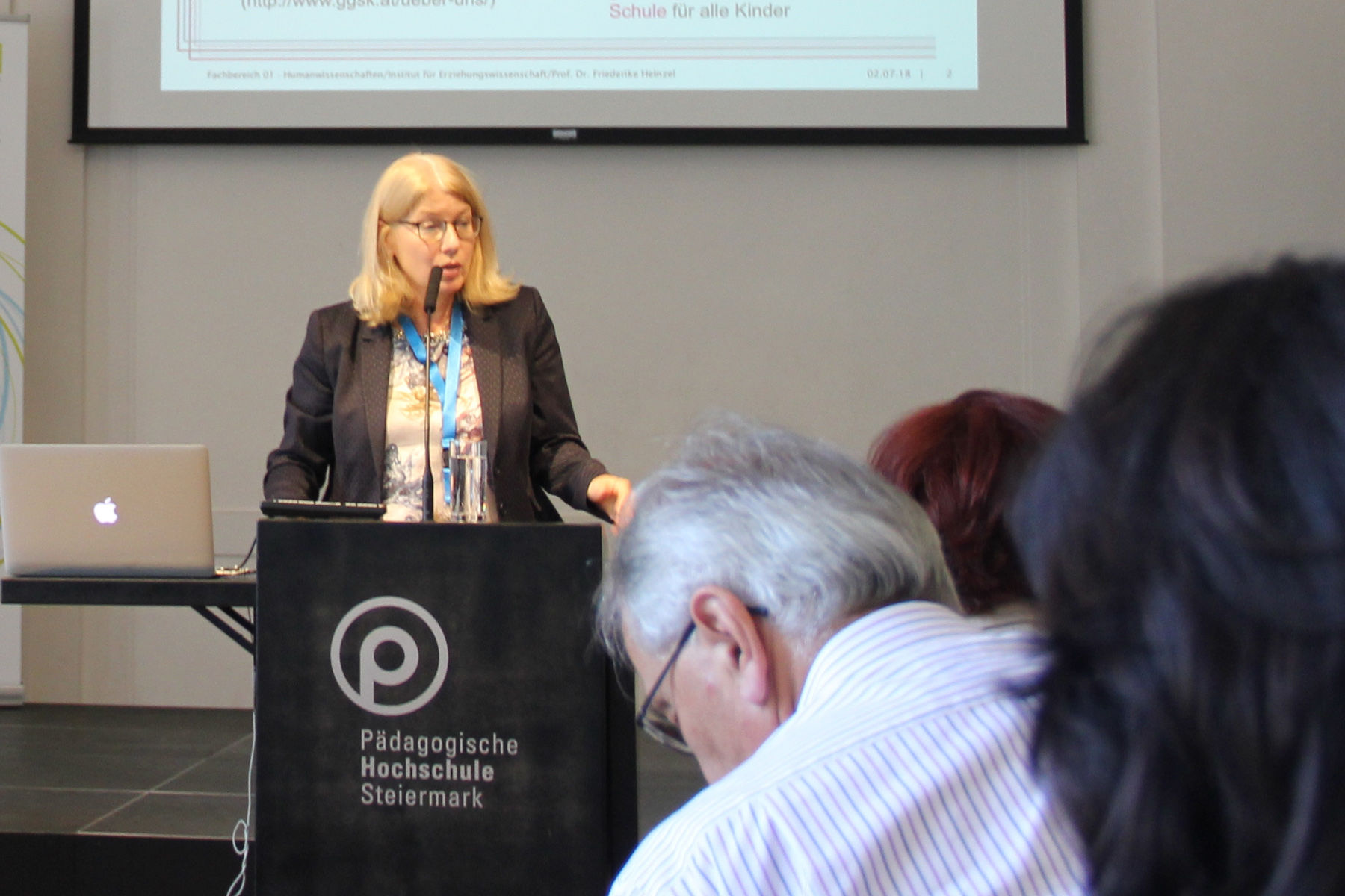 Univ.-Prof.in Dr.in Annedore Prengel, Universität Potsdam, gab mit ihren 12 Bausteinen Inklusiver Didaktik und den fünf Handlungsoptionen der Inklusiven Pädagogik Einblicke in ihre eigene intensive Forschungsarbeit. Von besonderer Bedeutung ist die Beziehungsebene: „Alle Kinder brauchen, um sich entwickeln zu können, Erwachsene, die verlässliche, feinfühlige Beziehungen zu ihnen pflegen.“ Ebenso zentral ist die Anerkennung der Gleichwertigkeit von Differenz.