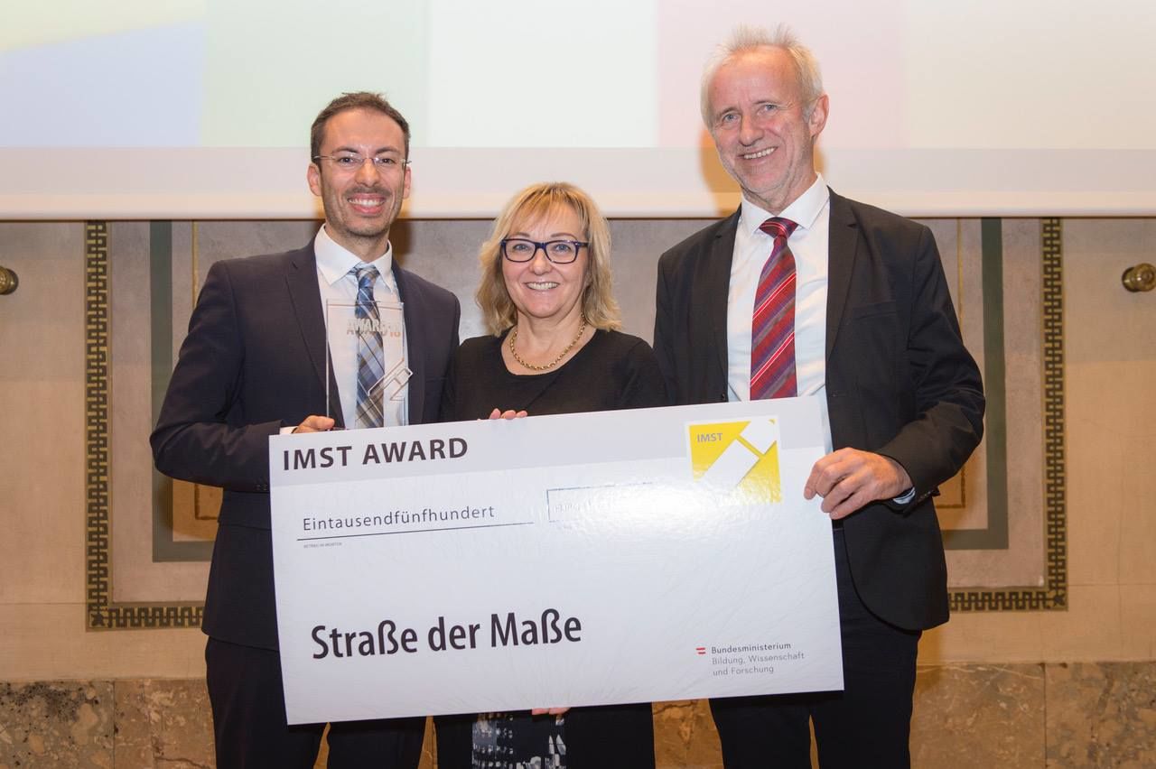 Für das Projekt "Straße der Maße" haben die drei Professor*innen der KPH Graz den IMST-Award für herausragende innovative Schulprojekte erhalten!